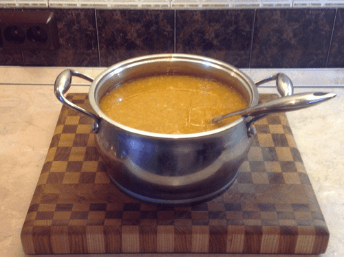 Bring the broth to a boil, then add the rinsed lentils and cook for 40-50 minutes (until the lentils become soft).