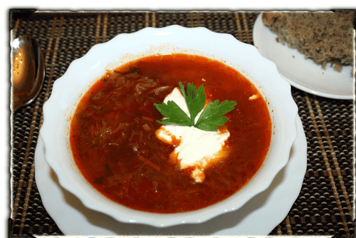 When serving borscht, sour cream and greens are added. Garlic and black bread go well with borscht.