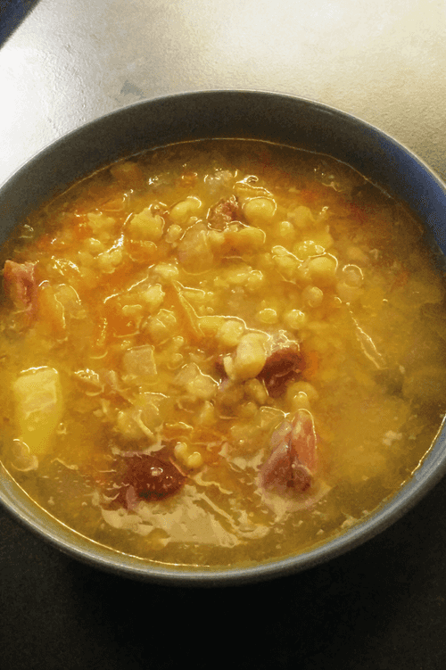 Cook the peas until they are soft (by the way, I have a secret — you don't need to soak the peas, just add a tablespoon of cold water every 30 minutes while cooking).