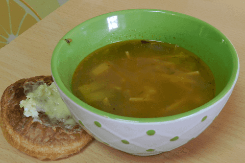 Tomato soup with garlic bread is a refined dish of Spanish cuisine that combines rich flavors and the aroma of traditional spices. Its history traces back to rural recipes in Spain, where tomatoes, herbs, and meat broth formed the basis of the diet. The soup has a velvety texture and a sweet-sour taste of tomatoes complemented by the spiciness of garlic and aromatic herbs. Hearty egg noodles add depth to the dish, while soft garlic bread with melted cheese makes it perfect for a cozy home lunch. This soup not only warms but also satisfies, and the combination of vegetables and spices offers a vibrant gastronomic experience. Served hot, it pairs perfectly with fresh herbs and a glass of good Spanish wine.