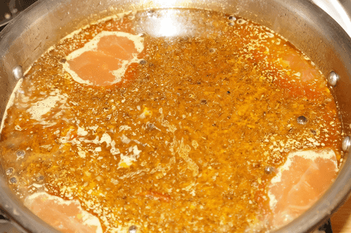 Add all the spices to the mixture at once, pour in a ladle of the cooked lamb broth, stir, and continue to simmer for another 10 minutes.