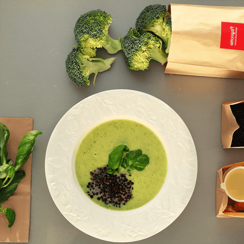 Broccoli and black lentil soup is an exquisite blend of Mediterranean simplicity and depth of flavor. This recipe, inspired by Turkish cuisine, embodies a balance of nutritious ingredients and aromatic spices. Tender broccoli florets add lightness to the soup, while black lentils provide richness and a velvety texture. Shallots and garlic create a mild spiciness, while coconut milk brings an exotic creaminess. Lemon juice adds a refreshing tang that perfectly complements the basil and chili pepper spice. This soup not only warms but also surprises with its harmonious taste. Ideal as a light dish for dinner or lunch, it fills you with energy and pleasure. Serving it with whole lentils and fresh basil leaves makes it even more appetizing and impressive.