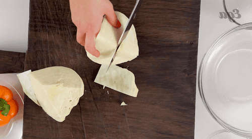 Chop the cabbage and add it at the very end. Cook for another 3 minutes, add bay leaf, salt, and pepper.