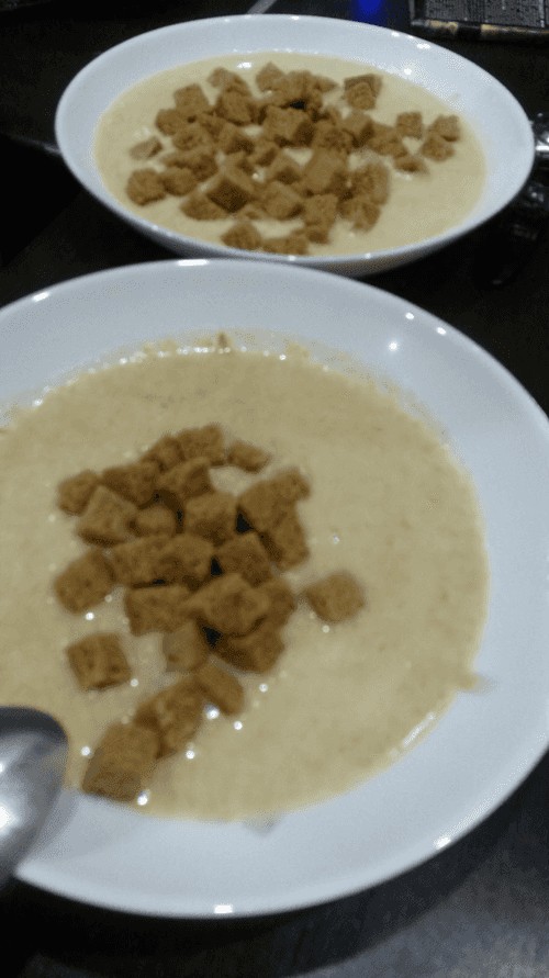 The last step remains. In a blender, mix the broth with chicken and potatoes and the vegetable mixture with cream. Finally, season the soup with salt and pepper to taste.