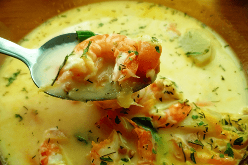 Creamy soup with shrimps in a multicooker