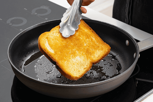 Sprinkle a slice of bread with olive oil and quickly fry on both sides in a pan.