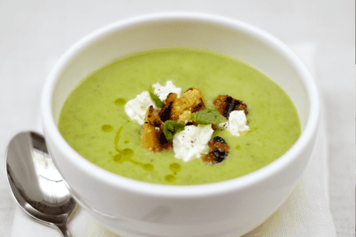 Fresh pea soup is a delicate spring dish that fills the kitchen with aromas of greenery and freshness. Its roots trace back to Russian culinary tradition, where vegetable soups hold a special place due to their simplicity and natural ingredients. The creamy texture is achieved by combining young peas, potatoes, and cream, while mint adds a light zest. The uniqueness of this soup lies in three serving options: with crispy meat chips and crackers for salty richness, with whole chips and fresh mint for an elegant presentation, or with toasted ciabatta, feta, and herbs for a richer flavor contrast. It’s the perfect dish for a light lunch that combines freshness, richness, and subtle aromatic accents.