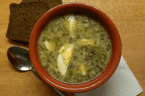 Polish sorrel soup is a true culinary legend of Polish cuisine where simplicity meets rich flavor. This soup, favored by villagers, has long been considered a spring gift when sorrel comes to life after winter's chill. Its refreshing sour taste harmonizes with the creamy texture of potatoes and sour cream, while eggs add tenderness and nutrition. It is made with meat broth, giving it depth of flavor, and beaten eggs poured in a thin stream create a velvety consistency. Served with quarters of boiled eggs, it transforms into a hearty dish that warms the soul. This soup is perfect for a spring lunch, delighting with freshness and lightness.