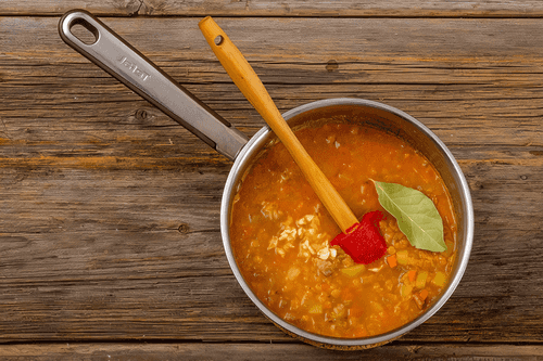 Lentil soup with pork and smoked paprika is a cozy dish from French cuisine that combines depth of flavor and the aroma of smoky spices. Red lentils give the soup a velvety texture, while pork neck and smoked brisket enrich it with a rich meaty taste. The light sweetness of carrots and potatoes harmonizes with the spiciness of paprika and garlic. This soup has warming properties and is perfect for cool evenings. Bay leaves and fresh herbs - cilantro and dill - add freshness to the soup and complete its aromatic composition. Served hot, garnished with chopped herbs, it can be accompanied by crispy baguette, emphasizing its rustic character. This dish is great for family lunches as well as leisurely cozy dinners.