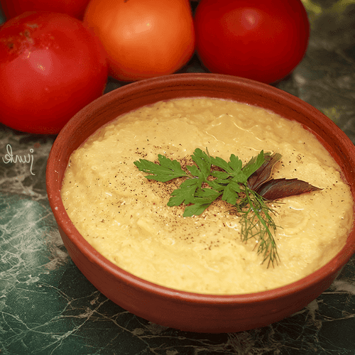 Vegetable puree soup with cauliflower is a delicate and aromatic dish of European cuisine, suitable for those who appreciate light and healthy food. Its history is rooted in healthy eating traditions where vegetables play a key role. This soup has a soft, creamy taste with spicy notes of spices like coriander and cloves. Cauliflower adds lightness to the dish while potatoes provide richness. The harmonious combination of vegetables and spices makes it an ideal choice for a fasting menu. It is served with herbs, ground pepper, and a drizzle of olive oil that enhances its sophistication. This soup warms on cool days and is perfect for a light lunch or dinner, providing a sense of coziness and comfort.