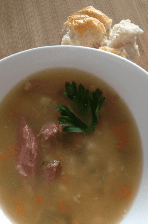Pea soup with smoked ribs and celery is a fragrant dish of European cuisine, loved for its richness and warming taste. Peas infused with the smoky aroma of smoked ribs give the soup thickness and a velvety texture, while celery adds fresh, tangy notes. This dish has a long history: pea soup has been prepared in Europe for centuries as a hearty and nutritious meal for the cold season. It is perfect for family dinners, filling the home with a cozy aroma. Each spoonful warms and satisfies, and its simplicity and accessibility make it a favorite among traditional soups. Served hot, often with a piece of fresh bread that enhances its rich flavor.