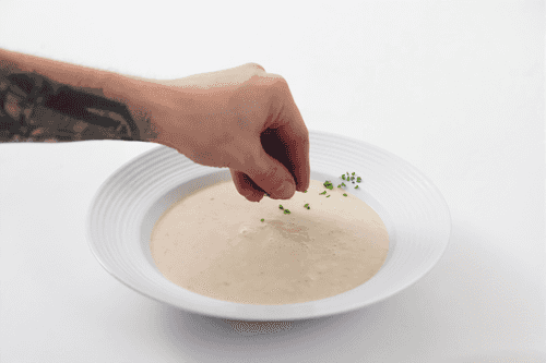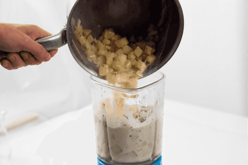Blend until smooth with an immersion blender, add ground nutmeg, salt, and pepper.