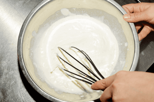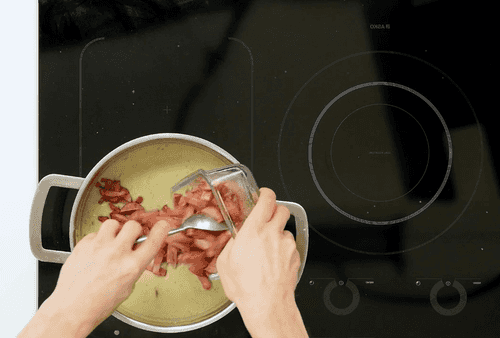 In a separate bowl, whisk the sour cream and flour, add about 100 ml of soup, and mix until smooth.