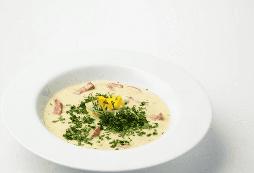 Borscht, but white. Not Ukrainian and not Russian - Polish! In Poland, borscht is cooked not only on weekdays, but also on holidays, there are dozens of variations of this soup, including the one we are used to, with beets. But white borscht is a ritual Easter treat , it is prepared without beets and other color enhancers, since white is a symbol of innocence and rebirth. Sausage is responsible for the meat component in the soup, in this recipe - semi-smoked Krakow sausage, although white borscht is more often cooked with blood sausage. And the thickness and chalky whiteness of the broth is determined by the dressing of milk and flour fried in butter.