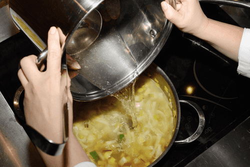 Pour the resulting mixture into the soup, stir, and cook until thickened for about five minutes.