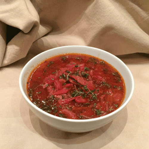 Borscht with duck and mushrooms is a variation of classic Russian borscht enriched with deep flavor notes of mushrooms and the tenderness of duck meat. Its history roots in traditional Slavic cuisine, where borscht was considered both a daily and festive dish. In this recipe, white mushrooms add a rich aroma, while the duck makes the broth thick and hearty. The slight acidity of apple cider vinegar and tomatoes harmoniously balances the sweetness of beets, creating a layered taste. This dish is perfect for winter evenings, warming with its rich aroma and deep flavor palette. Borscht with duck and mushrooms can be served with fresh thyme and garlic, adding spicy nuances to its soft, velvety taste.