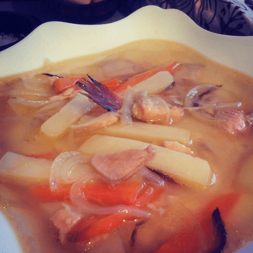 Soup with trout bellies