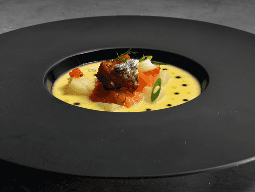 Salmon soup is a jewel of Japanese cuisine, combining the tenderness of seafood with creamy richness. Its roots trace back to Japan's coastal regions where fresh salmon is a key ingredient in many dishes. This soup stands out for its harmony of flavors: the softness of milk and cream highlights the fish's natural sweetness while spicy notes of dill and chili add zest. Potatoes, carrots, and onions provide texture, creating a hearty and warming dish. Served with crispy black bread and aromatic drops of oil, it becomes particularly exquisite. This soup is perfect for cold evenings; it nourishes and warms you up, turning into a true gastronomic meditation. Its taste is rich and layered, leaving behind a delicate creamy aftertaste and a hint of spiciness.