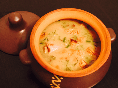 Pea soup with pork ribs is a hearty and aromatic dish from European cuisine, where simple ingredients transform into a culinary masterpiece. The rich broth from pork ribs, filled with depth of flavor, combines with tender pea puree to give the soup a velvety texture. The light sweetness of carrots and the spiciness of smoked meats complement the overall flavor composition, creating harmony in every spoonful. Traditionally, such a dish was served in cold weather as it warms and satisfies wonderfully. The finishing touch is baking the soup in a pot with ribs, which enhances its aroma and makes the presentation special. It is perfect for family dinners, especially with crispy croutons or garlic bread.
