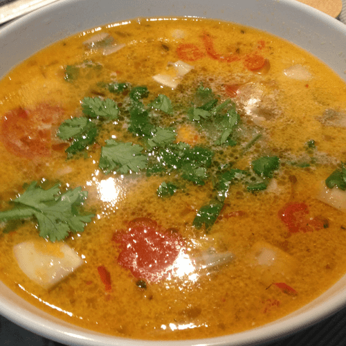 Tom Yum is a legendary Thai soup that combines vibrant flavors and rich aromas. Its history goes deep into Thai cuisine, where fresh seafood, spicy herbs, and coconut milk create magic on the plate. This soup offers the sharpness of chili, the freshness of lime, and the creaminess of coconut milk; the combination of shrimp and mushrooms makes it particularly rich. Tom Yum warms you up, invigorates you, and surprises with its balance of flavors, making it perfect for both a cozy dinner and a festive feast. It should be served hot, garnished with fresh cilantro; the best companion is fluffy rice that softens the fiery spiciness and reveals the depth of aromas.