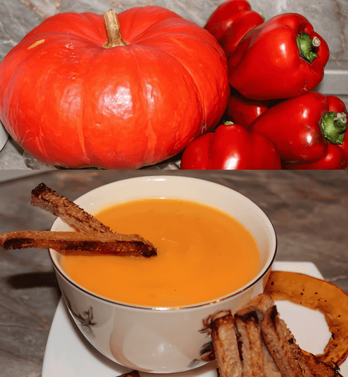 Pumpkin and bell pepper cream soup is true culinary magic, combining the brightness of autumn vegetables with a delicate creamy texture. Originating in European cuisine, this soup has won the hearts of gourmets with its velvety consistency and rich, slightly sweet pumpkin flavor enhanced by roasted bell pepper aroma. Carrots and onions add depth to the dish, while cream brings softness and harmony. White pepper and nutmeg create a subtle spicy accent, making each spoonful special. It’s perfect for cozy family dinners or festive lunches, and serving it with crispy croutons adds a textural contrast. This cream soup is not just food; it's a warm hug on a cool day.