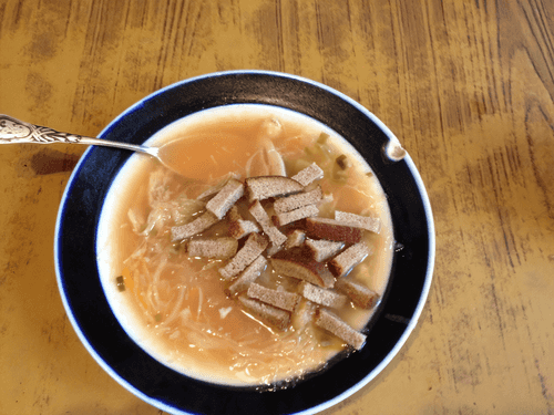 Sour cabbage soup with pork is a traditional Russian dish rooted in old village recipes. Thick and hearty, it combines the nourishment of fatty meat with the refreshing sourness of fermented cabbage. The dish warms you in cold weather, satisfies hunger, and fills you up. Cabbage gives the soup its characteristic tartness while spices add depth of flavor. The subtle aroma of garlic and bay leaves makes it especially appetizing. Such soup is traditionally served with rye bread or croutons and sometimes complemented with a spoonful of sour cream to soften the acidity. It takes a long time to prepare, allowing the ingredients to reveal their flavors. This is not just food but a part of Russian gastronomic history where each spoonful brings comfort and a sense of home warmth.