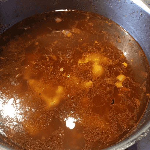 While the potatoes and cabbage are boiling, separate the skin and bones.
