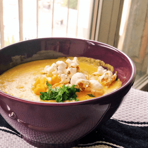 Serving a dish is very simple. Use herbs and popcorn (it's also a form of corn). You can top the soup with cream. Enjoy your meal!