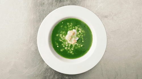 Strain the soup through a chinois. Cool to a temperature of 1 degree Celsius.