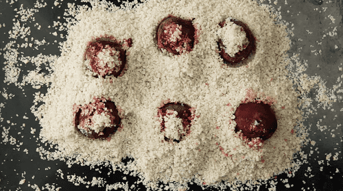 Bake the beetroot in sea salt at 100 degrees for 2 hours. Soak the beans in cold water overnight. Rinse, add water, bring to a boil covered, and place in the oven — cook for 40 minutes at 180 degrees.