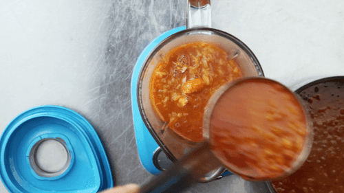 Add rice and 1 liter of broth, cook on low heat for about 25 minutes or until the rice is done. Add salt. Blend the soup in parts with half of the crayfish tails. Pour the mixture back into the pot, heat it up, add the remaining crayfish tails and warm for 2-3 minutes. Stir in cream and remaining crayfish oil.