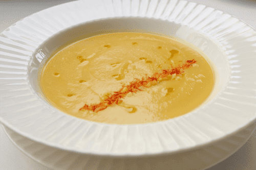 Corn cream soup with saffron is a delicate and aromatic dish that brings sophistication to the kitchen. Corn gives it a sweet taste, harmoniously complemented by the cream's velvetiness and the warmth of saffron, one of the rarest and most expensive spices. Saffron adds a golden hue and a subtle floral aroma to the soup, creating elegant gastronomic pleasure. Historically, corn soups were popular in European cuisine due to their nutrition and simplicity of preparation. This dish is perfect for a cozy lunch or dinner, especially on cool days. It can be served with fresh bread or a light salad, and adding sour cream makes the texture even softer. Corn cream soup with saffron is a true delight for connoisseurs of fine flavors.