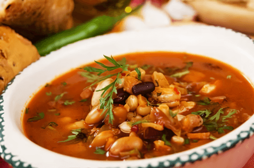 Bean soup with cabbage and smoked meats is a cozy dish from Greek cuisine. It reflects the traditions of Mediterranean diet where rich flavor and nutritious ingredients are important. Beans, rich in protein and fiber, add nourishment to the soup while smoked bacon and sausages deepen the flavor. Paprika adds a hint of spiciness and fresh dill completes the composition with fresh notes. This soup is perfect for cool days, warming with its rich aroma. It works well as a standalone dish or paired with fresh bread. Rich, thick, and aromatic, it evokes home comfort and traditional family meals. It combines simplicity in preparation with complex layered flavors—a true delight for lovers of hearty and fragrant cuisine.