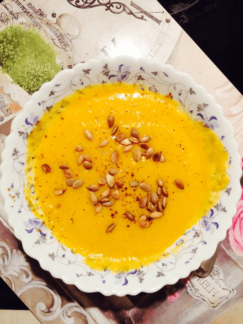 Serve in a soup bowl or plates, sprinkle with seeds and nutmeg.