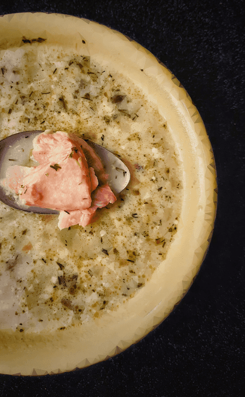 Finnish soup 'Lohikeitto' is the embodiment of northern culinary harmony. Its roots trace back to Scandinavian fishing traditions where fresh salmon, aromatic vegetables, and creamy textures create a unique flavor. The broth made from fish heads fills the dish with rich aroma while potatoes add softness. Sautéed onions and celery provide a light caramelized note, and dill and thyme finish it off with fresh herbal tones. The soup is velvety with a pleasant fish aftertaste, perfect for warming up on cold days. 'Lohikeitto' is traditionally served with rye bread, highlighting its Scandinavian character. It’s not just a dish but a cozy experience on a plate – the taste of nature, the sea, and home warmth.