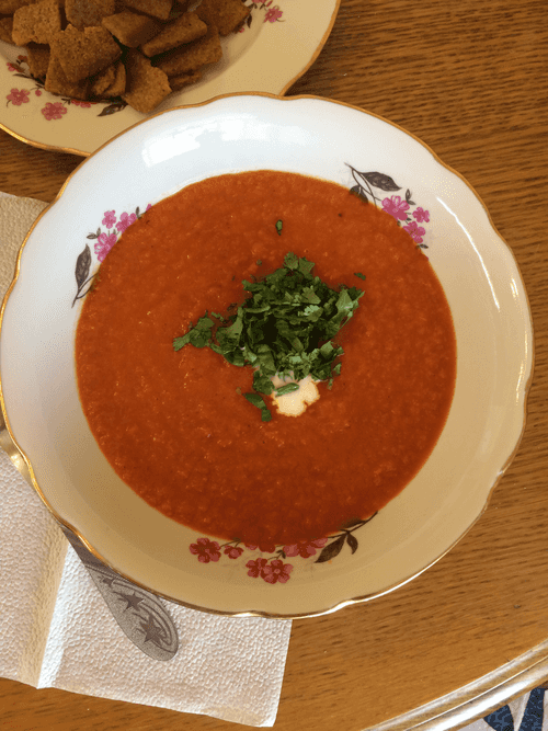 You can dilute the soup with boiling water if it is too thick. When serving, add a little yogurt to each bowl and garnish with chopped cilantro leaves.