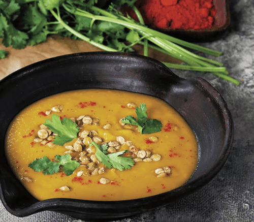 Transfer the vegetables with cooked red lentils to a blender and blend into a completely smooth puree.