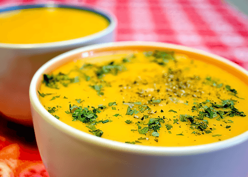 While the vegetables are boiling, grate the cheese. When everything is ready, blend the soup until smooth, season with salt and pepper, and pour into a bowl or plate. Add a tablespoon of boiled rice on top and sprinkle with grated cheese and herbs.