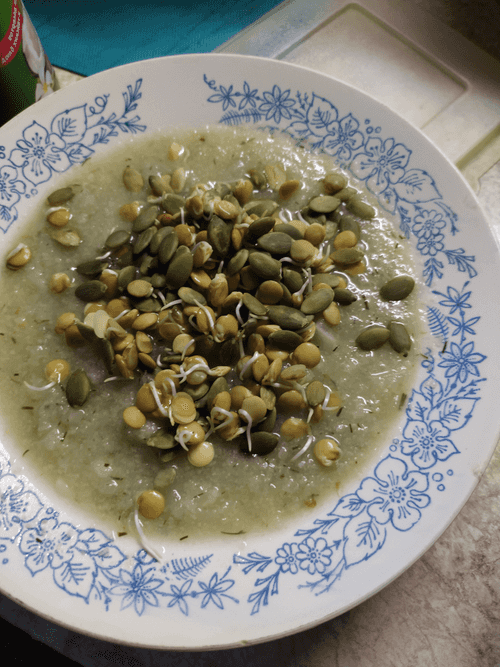 Let it cool slightly for 5 minutes. Stir in the remaining 2 tablespoons of dill. Puree the soup in a blender in small batches until very smooth, adding a little water (about 1/2 cup) if the soup is too thick. Return the soup to the pot and heat it up. Season with salt and pepper. Garnish with dill, black pepper, drizzle with olive oil, and a pinch of sea salt.