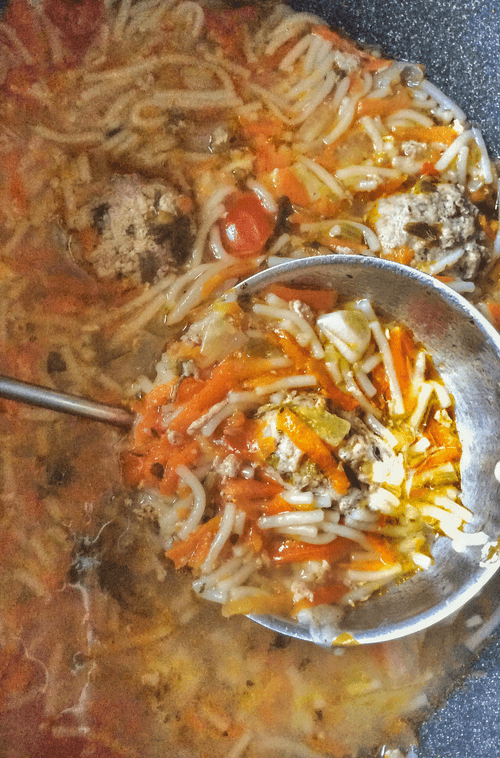 Rich soup with beef meatballs