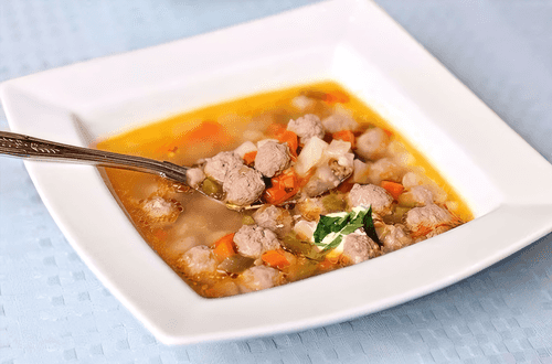 Meatball soup with sweet pepper is a cozy combination of aromatic broth, tender meatballs, and sweet notes of fresh pepper. Its roots trace back to European cuisine, where the tradition of cooking meatballs in soups originates from home recipes created for warmth and nourishment. The rich flavor is achieved by combining ground beef with onions, spices, and vegetables, while the addition of rice makes the soup particularly nutritious. Tender meatballs infused with the aromas of bay leaves, cumin, and fresh vegetables create a harmonious blend of textures and flavors. This dish is perfect for a family lunch or dinner, providing a sense of home warmth and care.