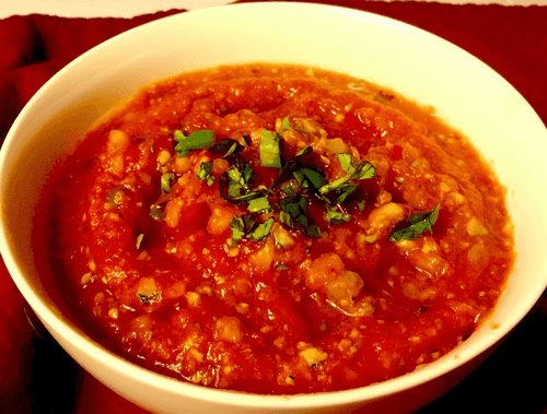 Chop, but not for too long, as tomatoes become tasteless if blended for too long. Usually, 30 seconds is enough.