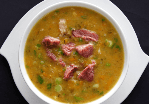 Here the smoked pork ribs need to be cooked right away with the peas, which makes the broth tart, strong and fatty. Ideal with an ice-cold shot of vodka.