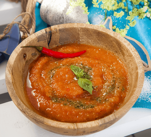 Gazpacho made from Baku tomatoes is a refreshing cold soup hailing from sunny Spain. The classic version is based on ripe tomatoes, but using Baku tomatoes gives the dish a rich, sweet velvety flavor. The lightness of cucumbers, sweetness of bell peppers, and spiciness of garlic combined with aromatic pesto create a harmony of freshness and depth of taste. Chili pepper adds a slight heat, balancing the tenderness of the vegetables. Gazpacho is perfect for hot days; it is served chilled, making it a wonderful summer treat. It's not just a soup—it's a gastronomic journey to sunny Spain with an Eastern twist brought by Baku tomatoes.