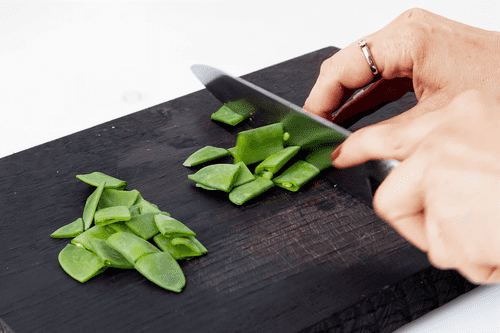 Wash the vegetables and cut them into not very small wedges. Cut the peas into three parts.