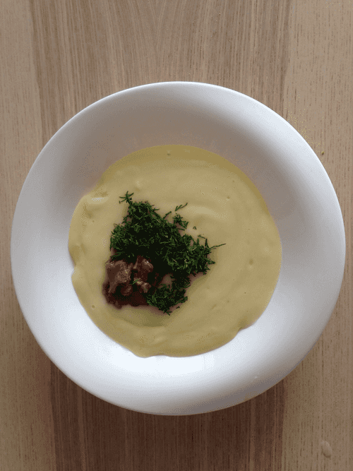 Cheese and potato soup with chanterelles is a cozy, warming dish of Russian cuisine, featuring a delicate creamy texture and rich flavor. Historically, soups based on potatoes and cheese were widely used in Russian gastronomy due to the availability of ingredients and their nutritional properties. The creaminess of the cheese harmonizes with the earthy aroma of chanterelles, creating a rich, layered taste. The light sweetness of milk adds extra softness to the dish, while fried onions contribute a warm caramel note. This soup is perfect for cozy home evenings, especially in cold weather. The chanterelles adorning the portions not only add zest but also make the dish visually appealing. A small portion of fresh dill adds a light freshness, completing this gastronomic masterpiece.