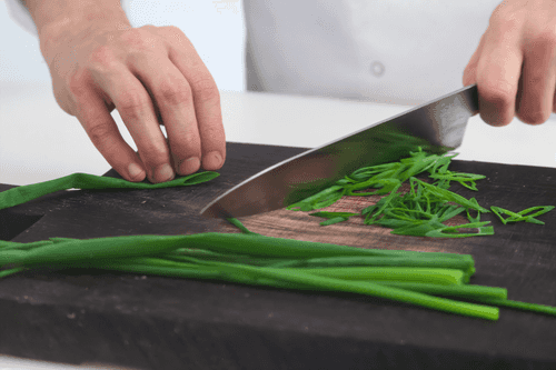Chop the vegetables: ginger (thinly), onion, two pieces (halved), green onion (julienned) and finely chop the cilantro leaves.