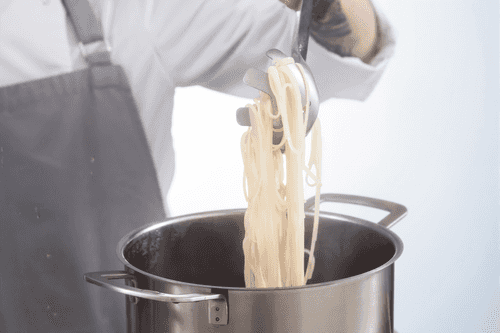 Strain the broth, return it to the stove, bring to a boil and add flat rice noodles, cook for five minutes.