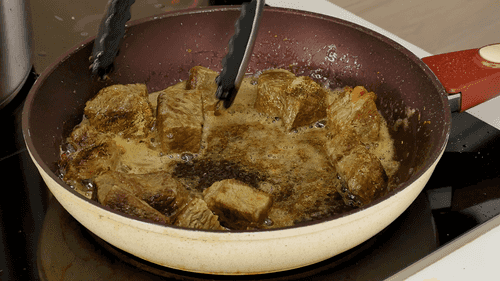 Strain the broth, fry the meat in a mixture of butter and vegetable oil until golden brown, adding some spices.