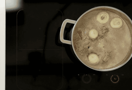 Bring to a boil over high heat, skim off the foam, reduce the heat and simmer for 2.5 hours, skimming off the foam as needed.